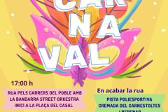 El recorregut culminarà a la pista poliesportiva, on tindrà lloc un dels moments més emblemàtics del Carnaval: la crema del Carnestoltes. Tot seguit, es compartirà un berenar popular obert a tots els assistents. La festa continuarà a les 21.30 h a la sala multifuncional amb un sopar de carmanyola. Any rere any, aquest esdeveniment es converteix en l’acte més multitudinari de la jornada, reunint veïns i veïnes de totes les edats en un ambient distès i festiu. Com a traca final, la nit s’allargarà amb música a càrrec de PD's locals, posant el punt final a una jornada plena de disbauxa, colors i esperit carnavalesc.